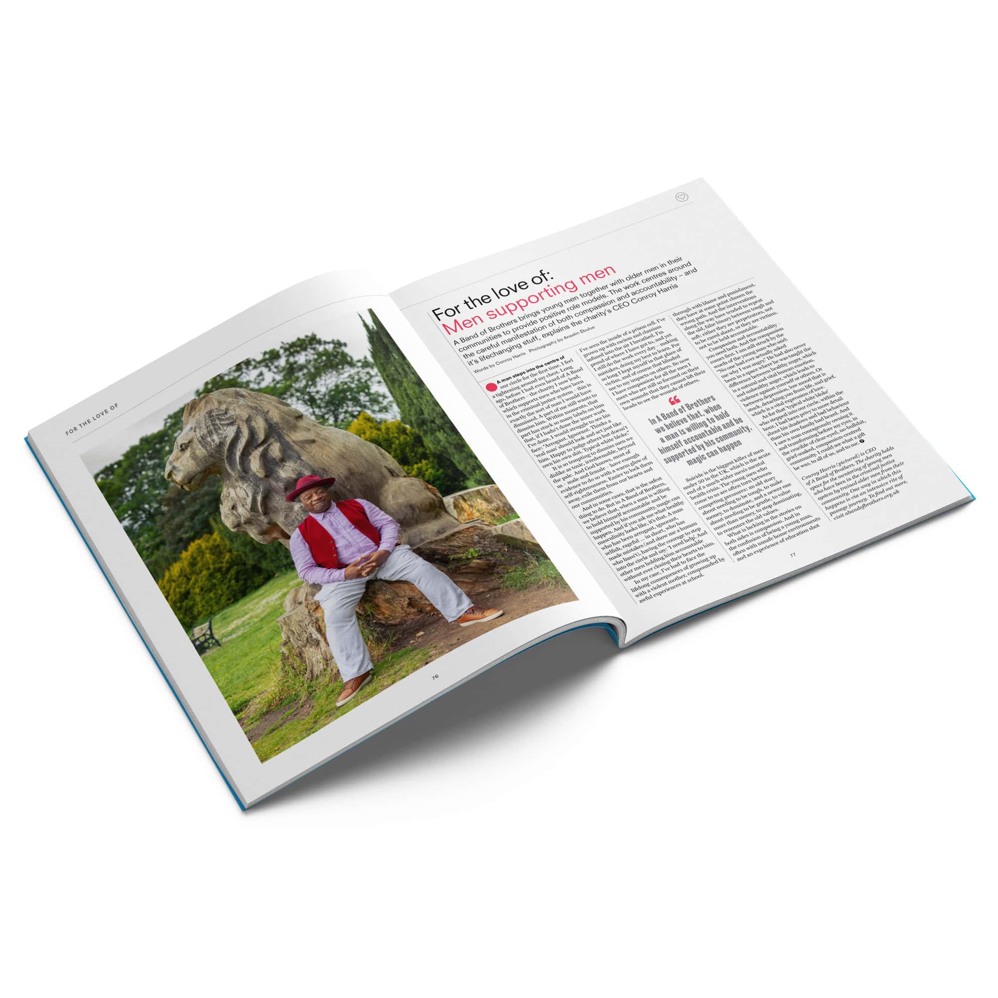 Other features include: Bold and beautiful ideas for collective thriving in The Ministry of Imagination • London’s first all-female garage • Training African hairdressers in mental health counselling • For the love of men supporting men • Life after escaping gang violence • How to inject awe into your life • Putting empty buildings to use • The value in changing our minds