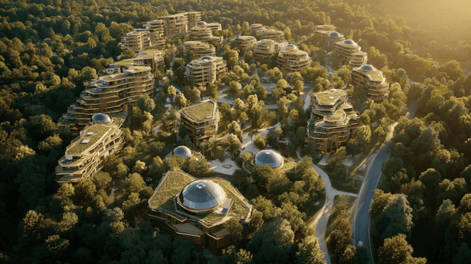 Wooden towers rise above the tree canopy, their facades alive with plants and shimmering solar cladding. The hum of traffic is gone. Instead, a quiet feet of autonomous robovans glides along dedicated lanes, linking neighbourhoods in smooth, predictable loops.