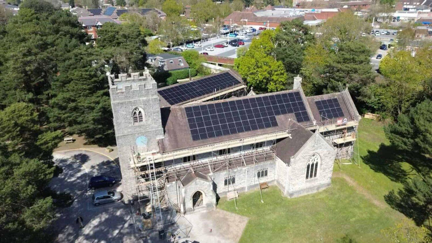 St Mary’s church in nearby Ferndown has also seen the light, transforming its rooftop into a mini solar farm. Image: