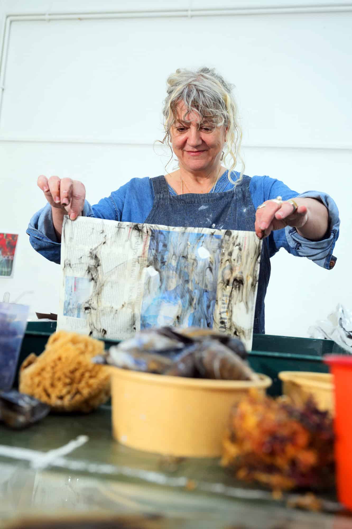 In AFYO’s case it was used to create pigments and ink for a roster of 16 artists including Antony Gormley and Anya Gallaccio. The latter added ground-down stones and mollusc shells to the ink to fashion a series of abstract seascapes.