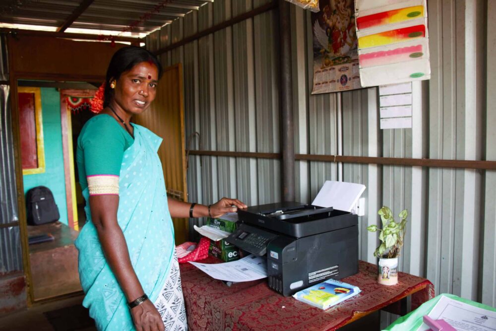Sitting in her tailor’s workshop outside her home, Mrs Vijay was finishing work on a bright blue blouse when we came by. The solar-powered sewing machine she bought in 2022 is a small miracle, she said, explaining how, without electricity, she had to use a foot treadle. “Now I can make two or three blouses in a sitting, compared to just one before. So I earn the same amount of money in much less time. And now I have more time for myself. And for the house”, she adds, quickly.