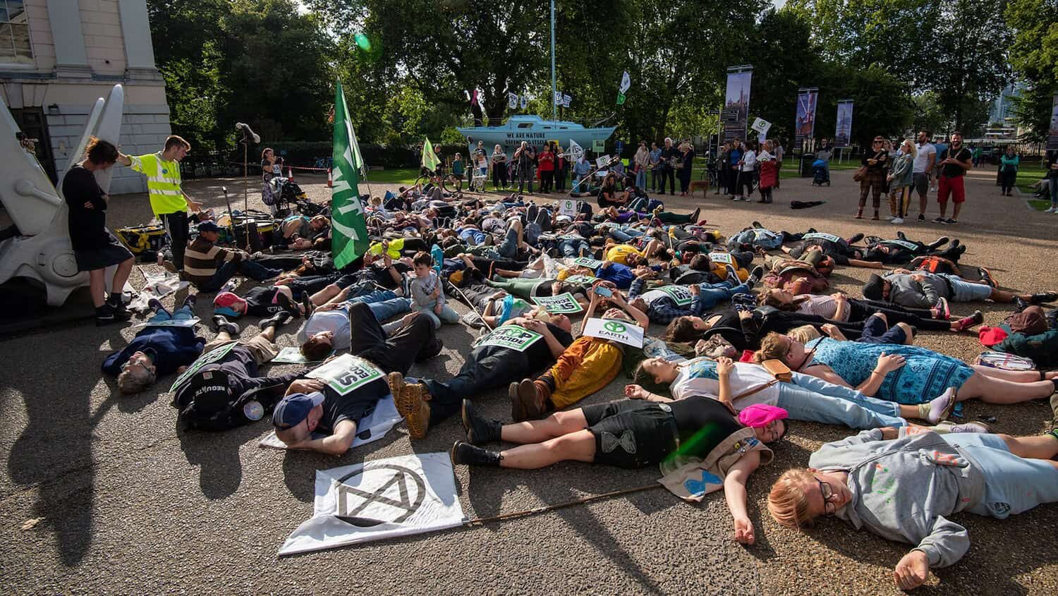 Extinction Rebellion protesters stage a ‘die-in’ outside the National Maritime Museum in Greenwich in August