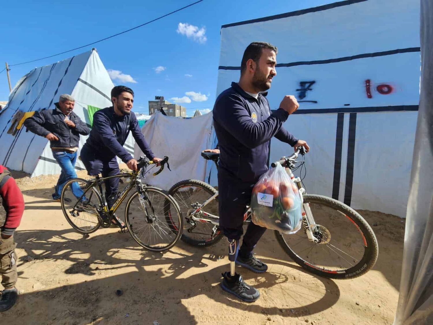 “Delivering aid on our bikes and walking with the help of a crutch is a message that life can go on amidst the waves of despair overwhelming the Palestinians since the start of the war and their displacement,” says Al Dali.
