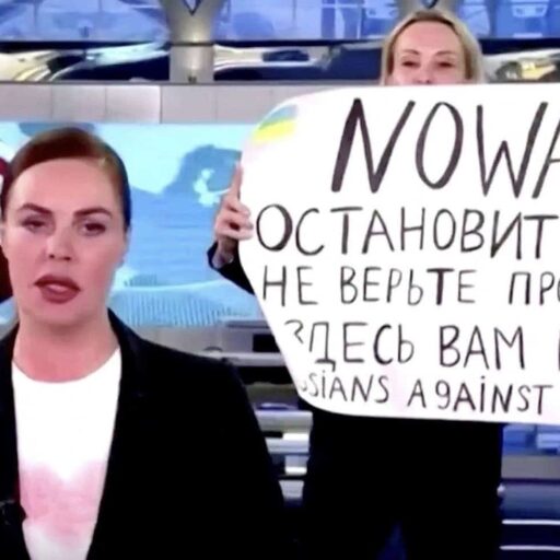 Risking jail time, Ovsyannikova stood behind a news anchor carrying a placard which read: “Don’t believe the propaganda. They’re lying to you here.” She has since been arrested and interrogated.