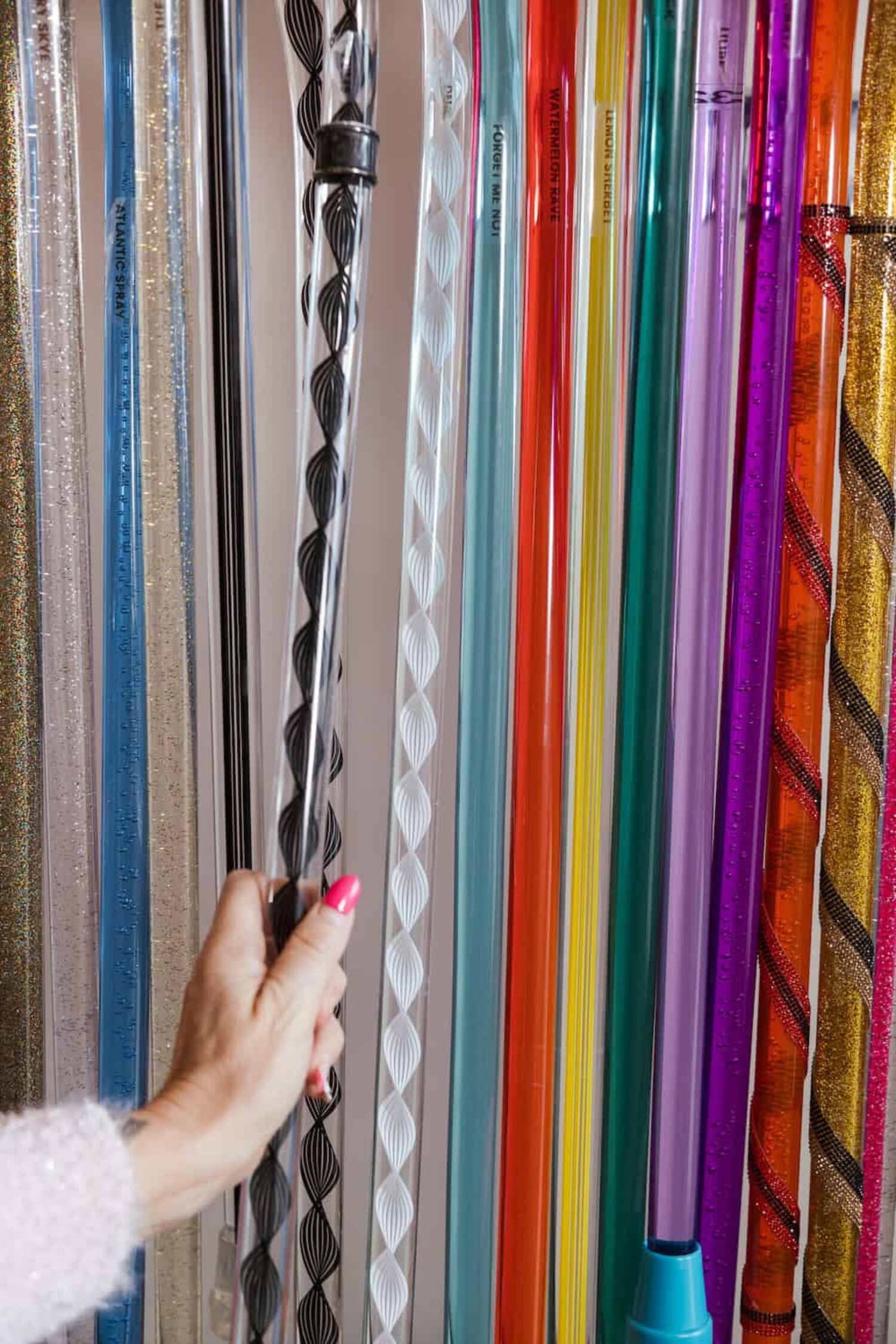 Today the North Yorkshire-based company creates custom walking sticks in every shade imaginable, from glittery winter silvers to aquamarine and emerald. It ships internationally and counts Selma Blair and Christina Applegate among its customers.