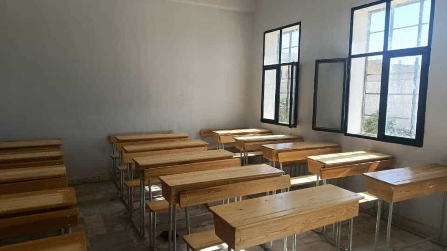 The damage is stark. Salim, a fifth-grader at one of the city’s schools, sits on a metal chair frame stripped of its wooden seat, struggling to write as his posture aches. Bathrooms are hollow shells scarred by bombing. Windows, doors, desks and blackboards are missing. Some buildings still bear structural damage.