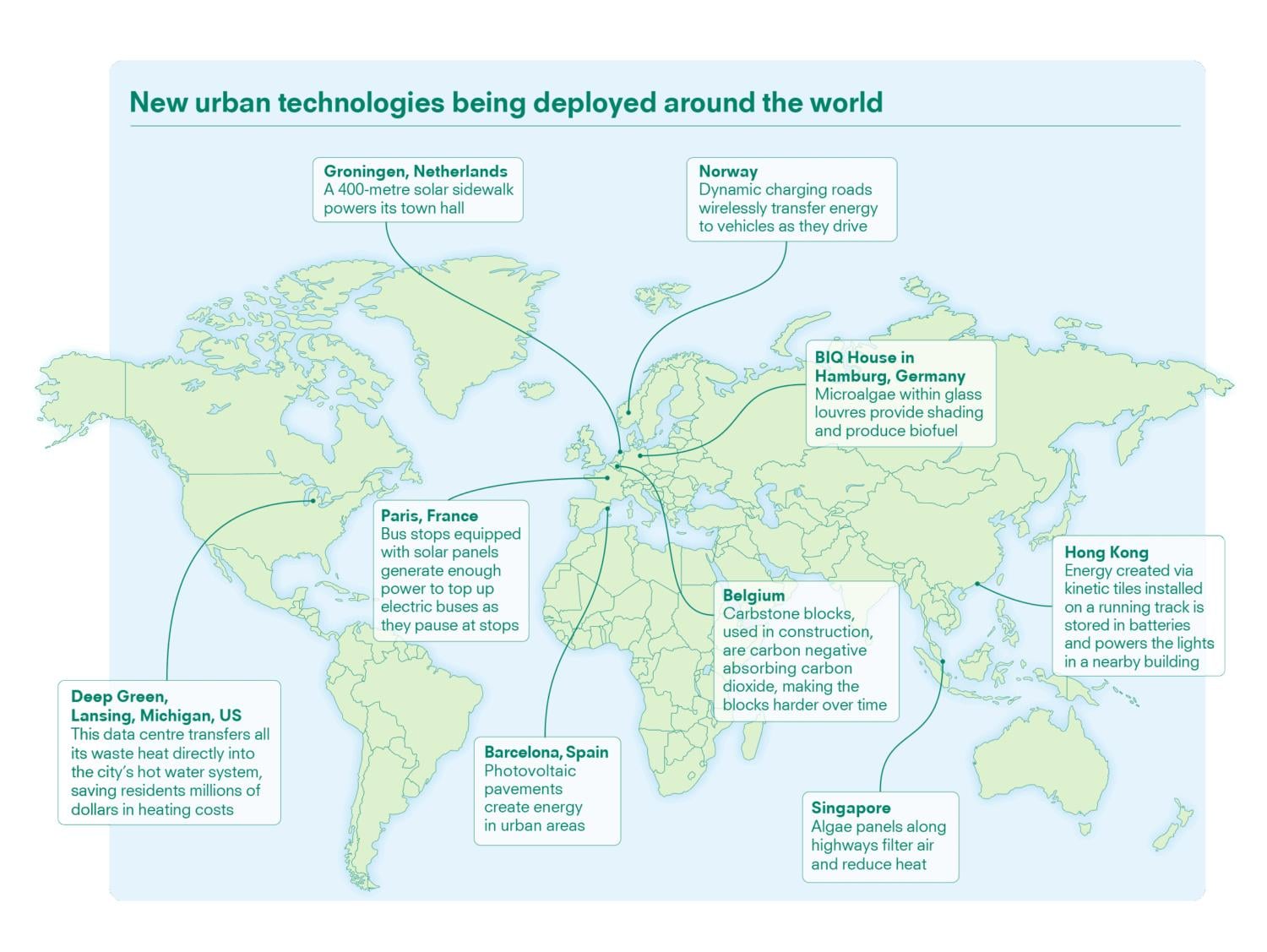 City evolution is not only about surface-level change. It is about the systems that keep everything running. Heat that once spewed wastefully from energy-hungry data centres is now captured and channelled into district heating. Public transport systems are electrifying at pace with dynamic charging roads, which wirelessly transfer energy to vehicles as they drive.