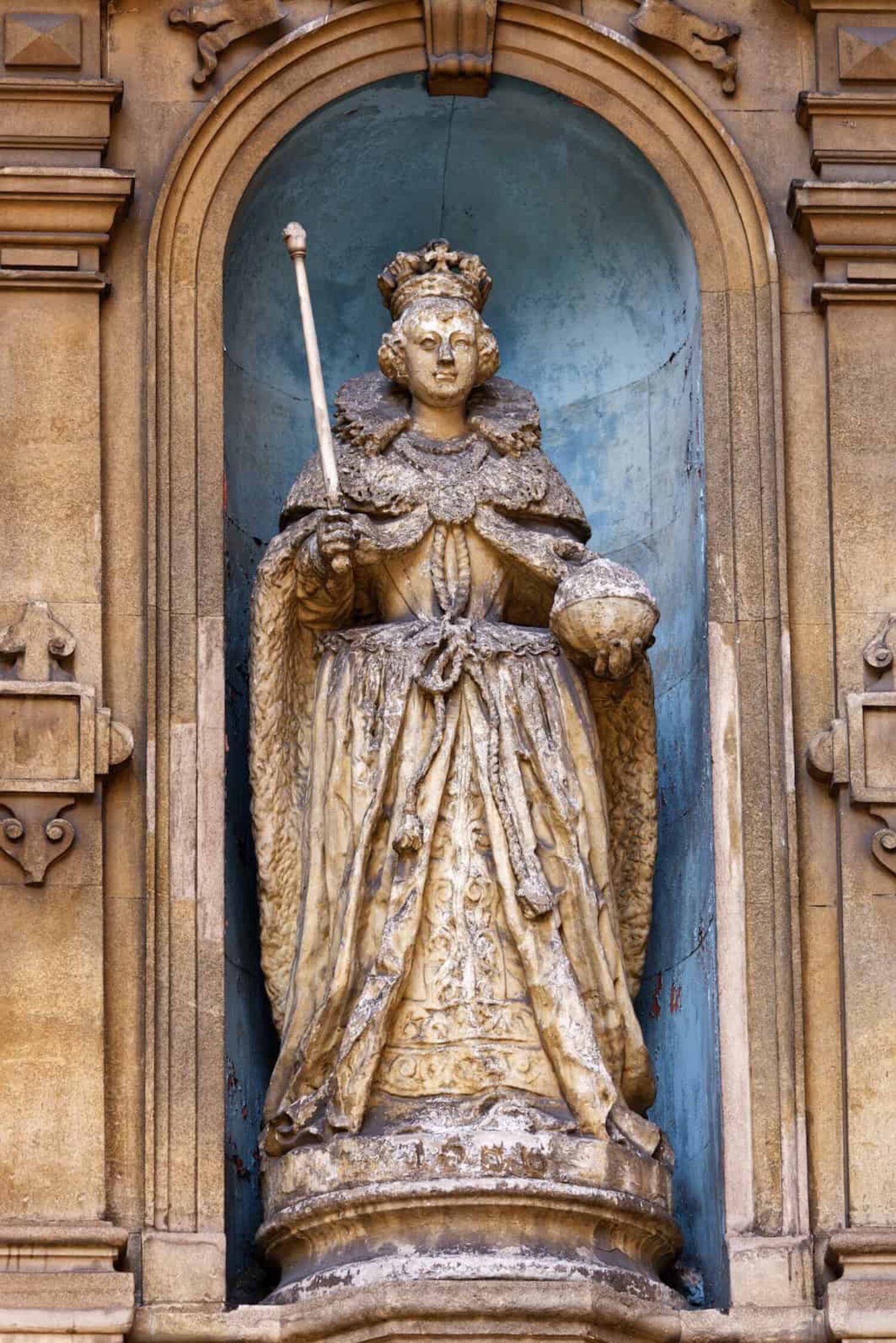 Elizabeth I – unknown sculptor, date unknown, either 1586 (for Ludgate's Elizabethan renovation) or post 1666 Great Fire reconstruction Church of St Dunstan-in-the-West, Fleet Street. Image: Rod Standing