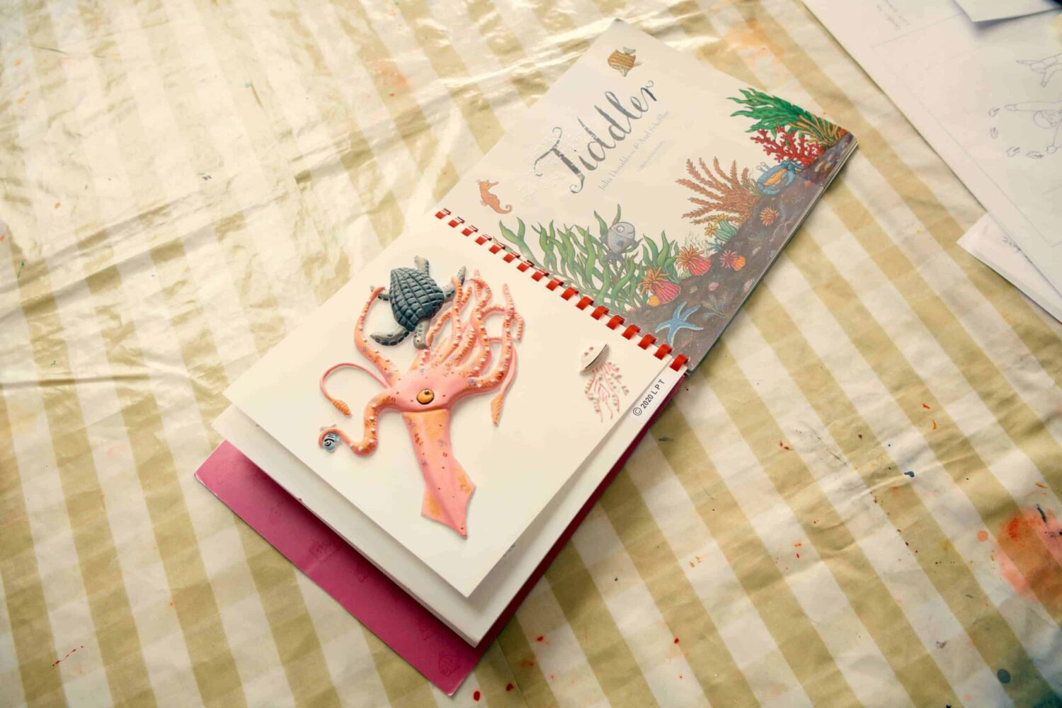 In his garage workshop, 88-year-old Len Webb uses a chisel to carve the underwater creatures that were originally illustrated by Axel Scheffer for Julia Donaldson’s picture book, Tiddler. Having previously worked in set design, Webb has been volunteering for Living Paintings for more than 20 years. “Len is an absolute diamond,” says Living Paintings’ head of communications Nick Ford.