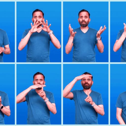 Image: Composite – Sujit Sahasrabudhe demonstrating the sign for ‘global warming’ on the Scottish Sensory Centre’s website