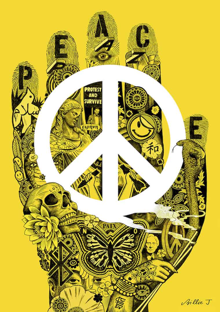 The works range from geometric and witty to hand-drawn and introspective, from Morag Myerscough and Anthony Burrill, among others. The Print Peace Project comes from Rounded Dot, a new, not-for-profit social enterprise. The results were sold as prints to raise money for CND.