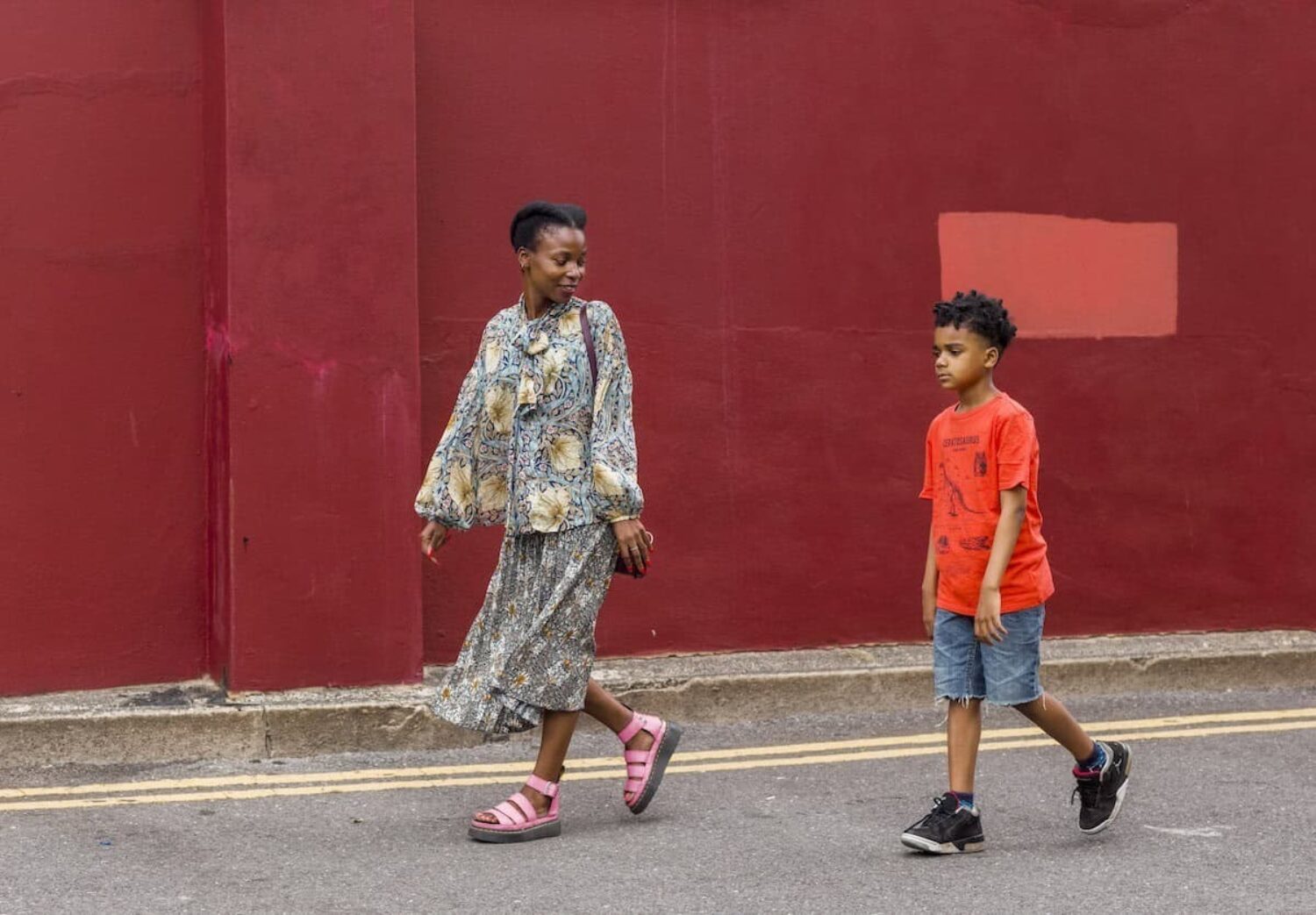 Main image: Jana, one of the parents featured in the exhibition, with her children. Credit: Polly Braden