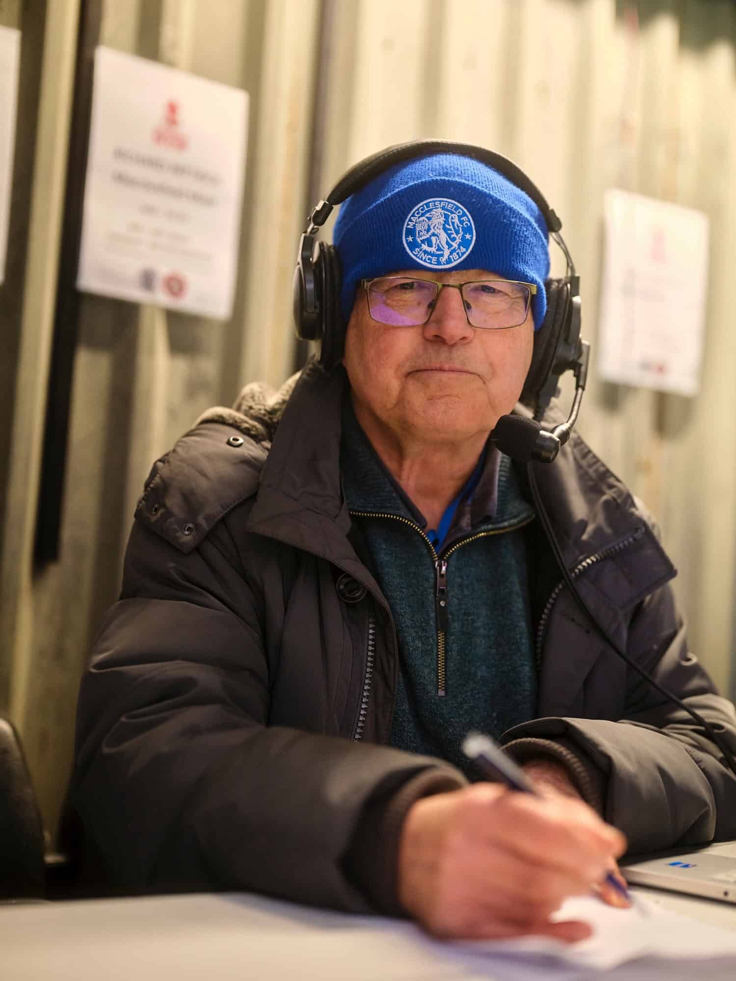 “We started in the 9th tier of the football pyramid – in the North West Counties League Premiere,” says club commentator Richard. “We did the commentary in a cow field with a bar between us and the pitch. We brought our own power, table and light and umbrella. And here we are today,” he says.