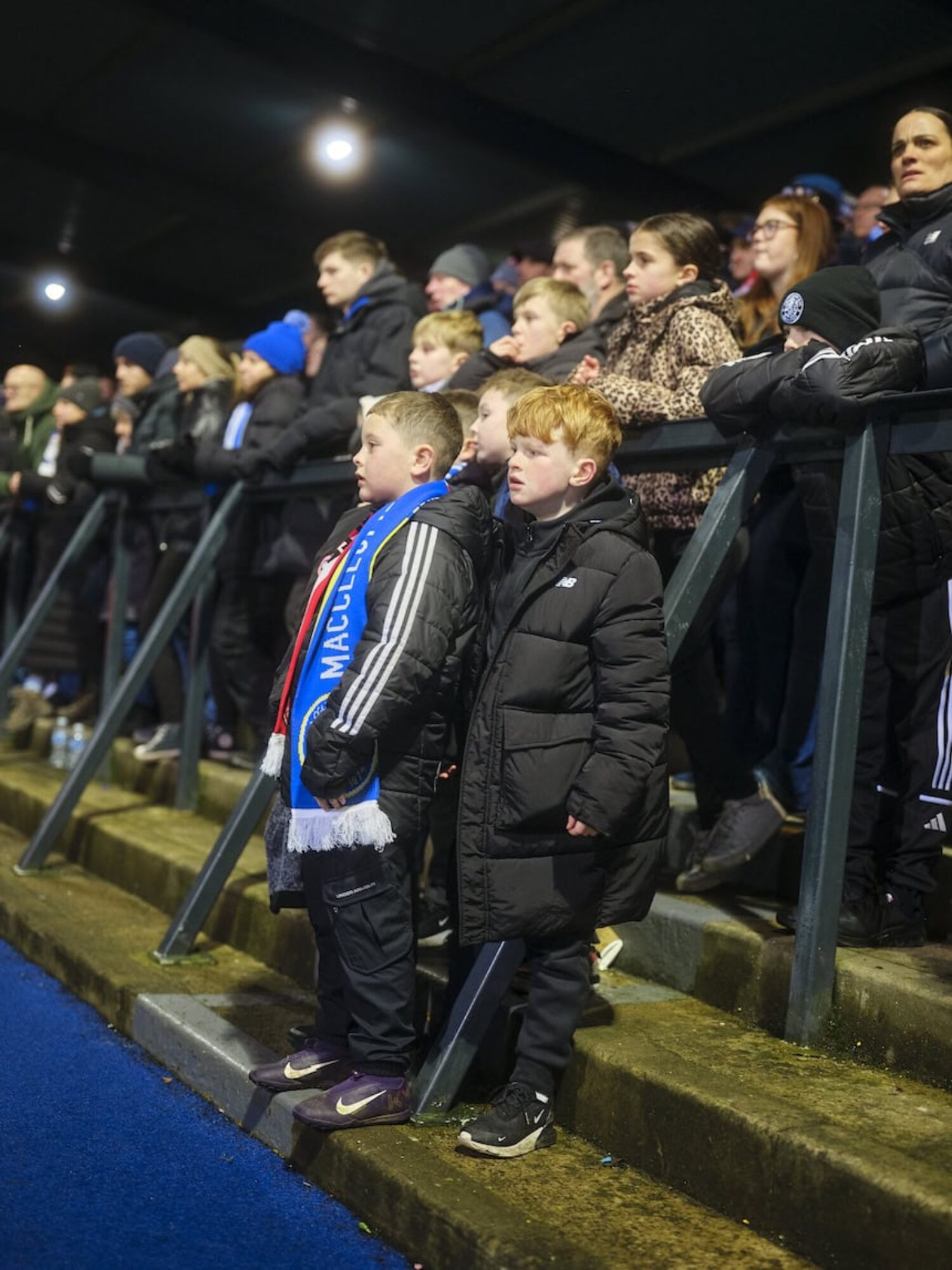 A cluster of young Macclesfield fans gather close together from behind the goal in the WRS Star Lane End.